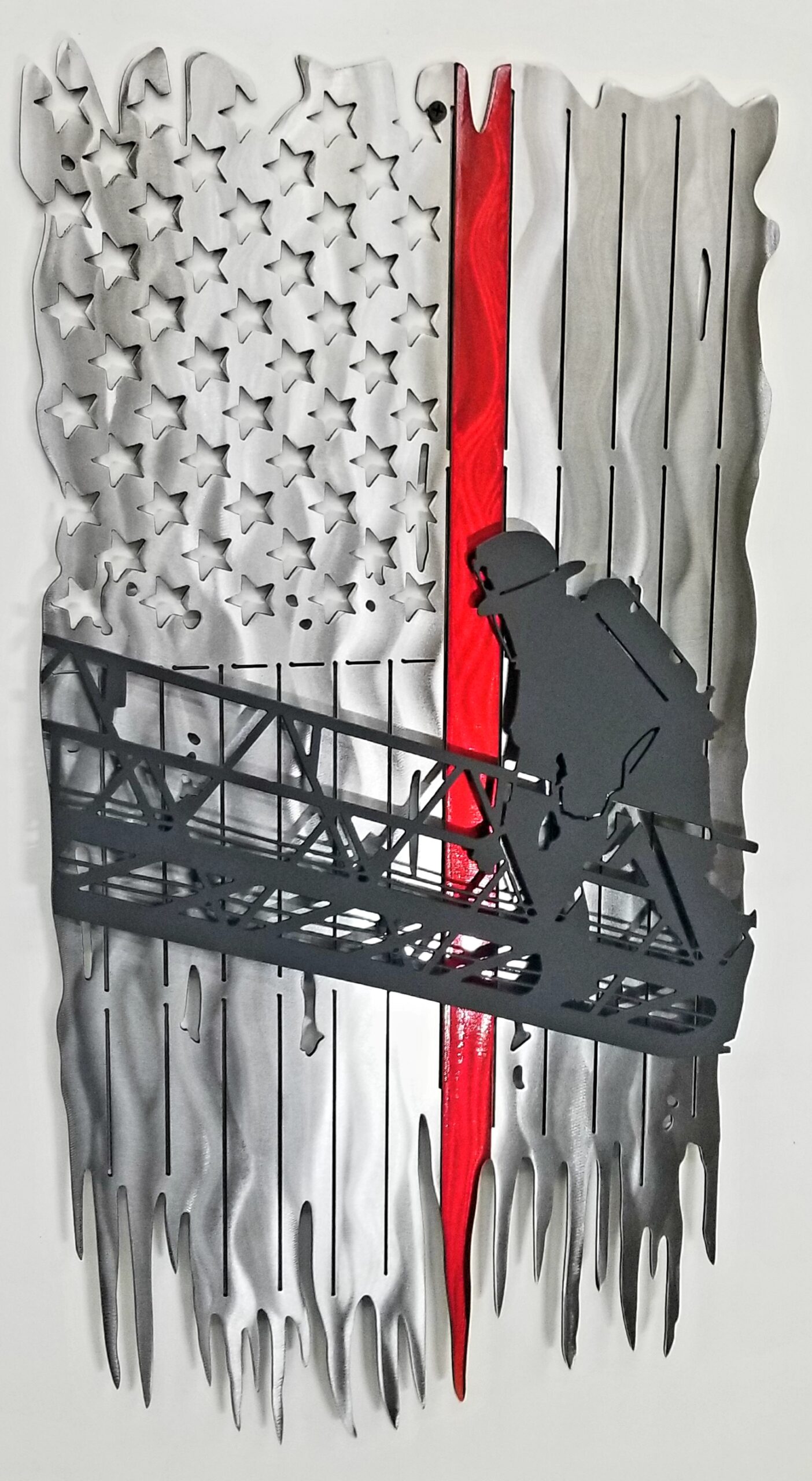 Show your support for firefighters with this unique sign you won’t find anywhere else! This is a multi-layered sign made of thick, quality steel and designed to stand out as a show piece. This sign can be customized with a badge number and/or name of your firefighter. Please email us for customization options at [email protected].