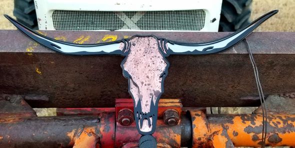 Hand made and painted 2-layer steel longhorn sign. Custom patina’d back layer, front layer contains the perimeter details. Colored as artists choice. No two will ever look the same! Own this unique, one of a kind item. Makes a perfect gift for any rancher or cattle enthusiast.